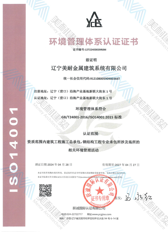 遼寧美耐金屬建筑系統(tǒng)有限公司位于遼寧(營口)沿海產業(yè)基地,專注于預制金屬建筑系統(tǒng)領域,是一家集工業(yè)建筑設計、制作、施工及相關的技術咨詢與服務為一體的綜合性服務企業(yè)。作為國家鋼結構協(xié)會會員、中國建筑金屬結構協(xié)會會員單位與國家高新技術企業(yè),美耐建筑集建筑工程施工總承包、鋼結構工程專業(yè)承包等多種資質于一身,并擁有22項鋼結構建筑領域專利,9項軟件著作權。